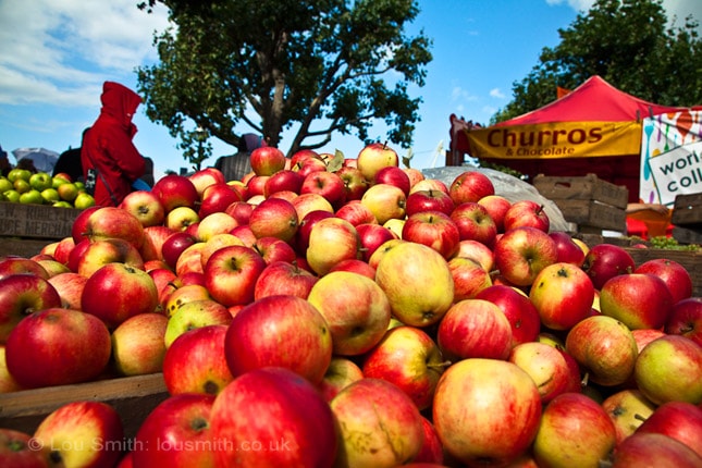The Thames Festival is always very exciting on London’s South Bank. Returning every year in September the Festival celebrates the cultural diversity of London. This is one huge party which runs all weekend. Traders display their vibrant stalls. This stall holder sold organic fruit. Red crispy apples, who could resist to take a bite?